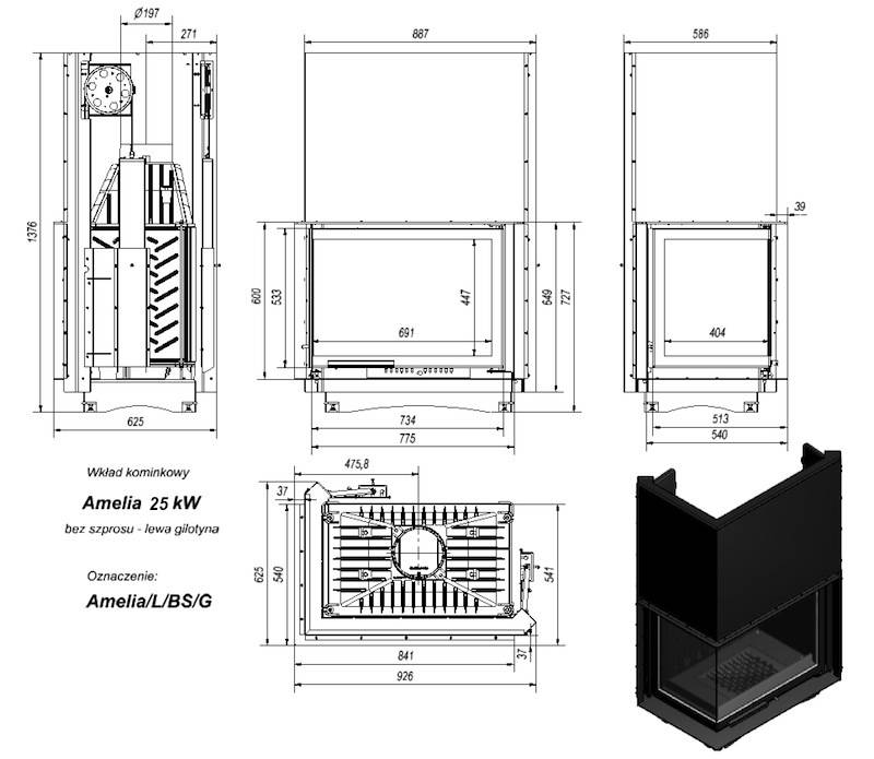 - Echipat cu: Clapeta de tiraj, Deflector, Geam ceramic refractar 800 C