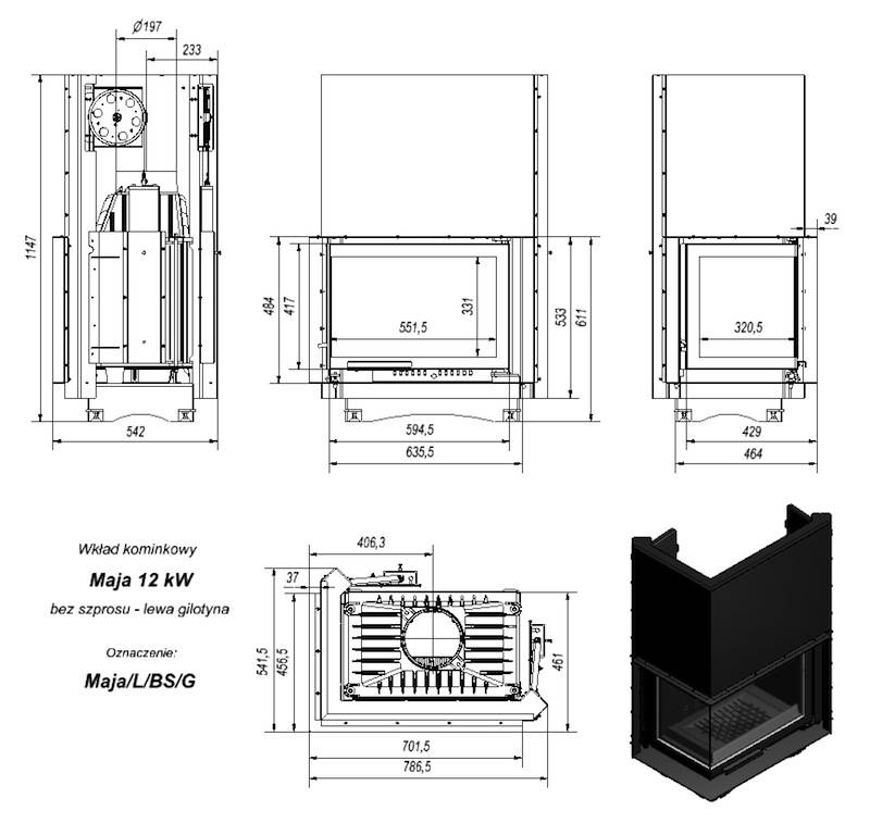 - Echipat cu: Clapeta de tiraj, Deflector, Geam ceramic refractar 800 C