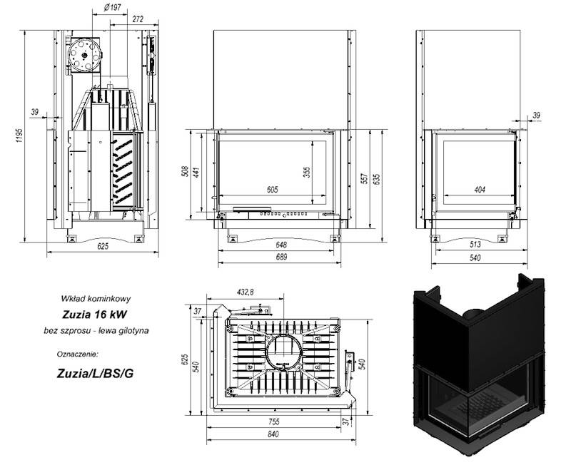Focar din fonta Zuzia 16 kW BS sticla stanga cu usa glisanta