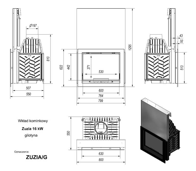 Focar din fonta Zuzia 16 kW cu usa glisanta