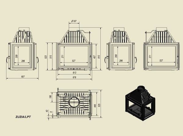 Focar din fonta Zuzia 16 kW Tunel sticla 4 laturi